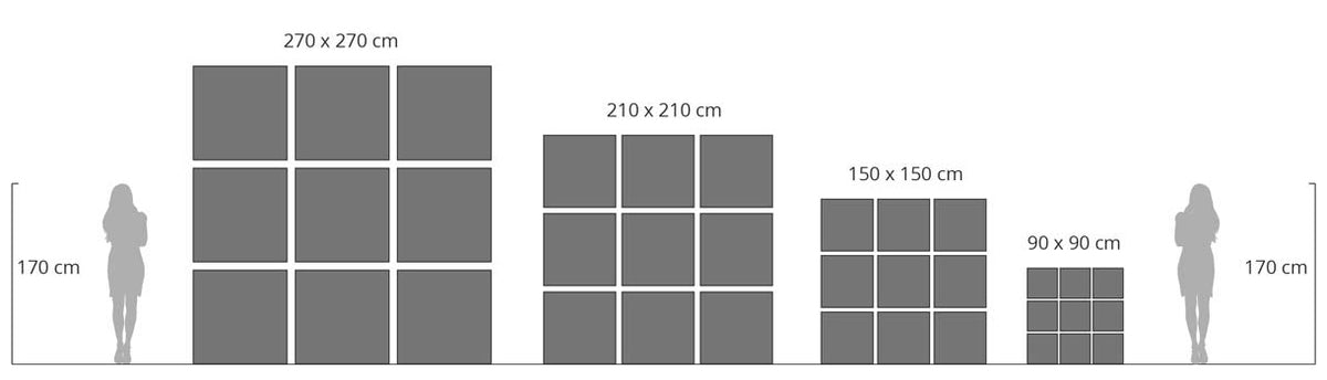 9 delar - Kvadrat | 270 x 270 cm | 9 | 9 x 90 x 90 cm | 12.3 kg |